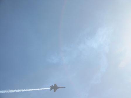 look, mommy, it's a plane up in the sky.